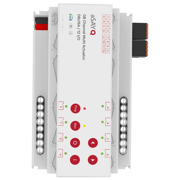 AsayQ KNX tabanlı anahtar aktüatörleri, konut ve ticari otomasyon projelerinde artan konfor, esneklik ve enerji verimliliği sağlamak için geliştirildi. Geniş kanal (8, 16, 24) ve akım seçenekleriyle sunulan bu aktüatör serisi, akıllı bina çözümleri için yüksek uyumluluk ve güvenilir performans sunar. Aydınlatma, perde-panjur ve HVAC kontrolü gibi çok yönlü uygulamalar için ideal olan AsayQ Aktüatörleri, her türlü bina altyapısında kolay entegrasyon sağlar.